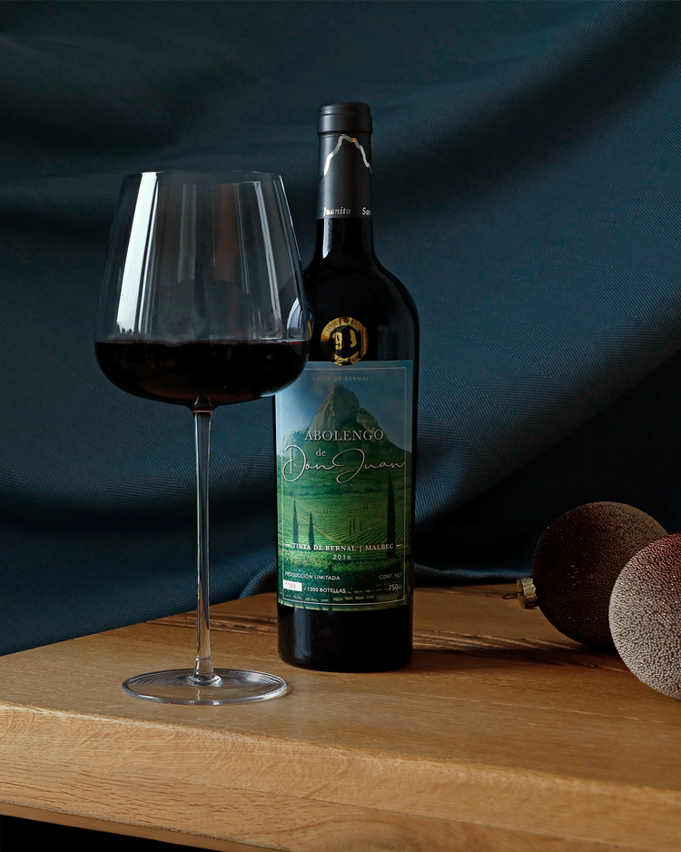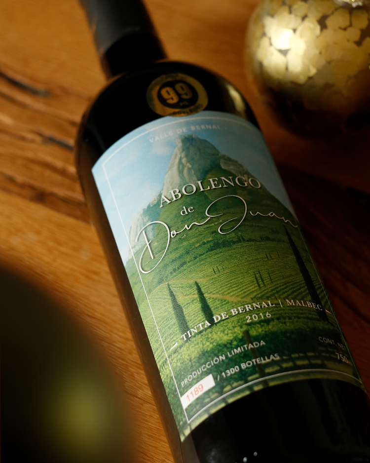 Abolengo de Don Juan: Tinta de Bernal - Malbec ist ein Beweis für ihre Hingabe zum Land, der ausschließlich aus 100% auf dem Anwesen angebauten Reben hergestellt wird und nur in außergewöhnlichen Jahren produziert wird, wodurch die Produktion auf nur 1.300 Flaschen begrenzt ist.
